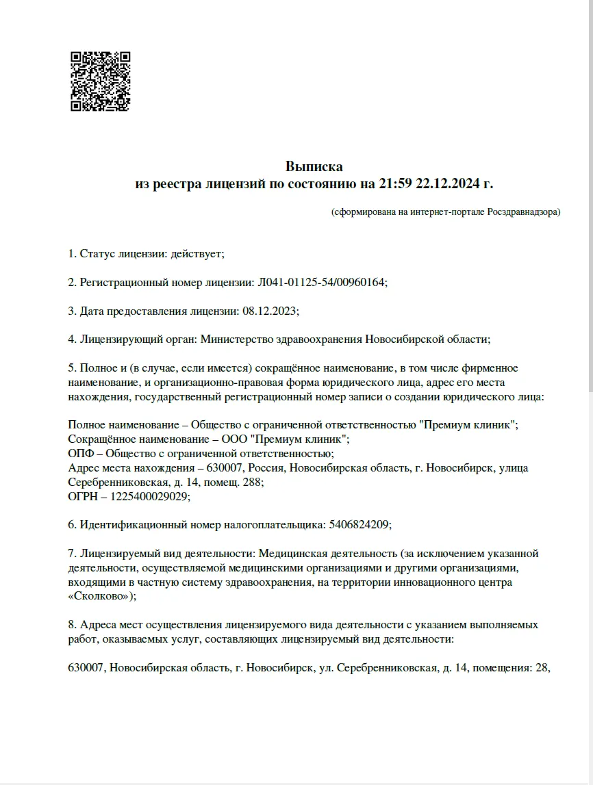 Процедура абсолютно безопасна, так как проводится квалифицированным врачом с использованием сертифицированных препаратов. В случае осложнений пациенту может быть предложена госпитализация. При визите с пациентом или его родственником заключается договор об оказании медицинских услуг